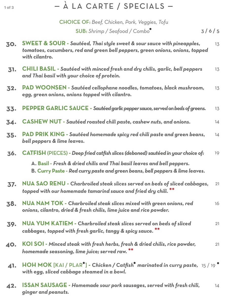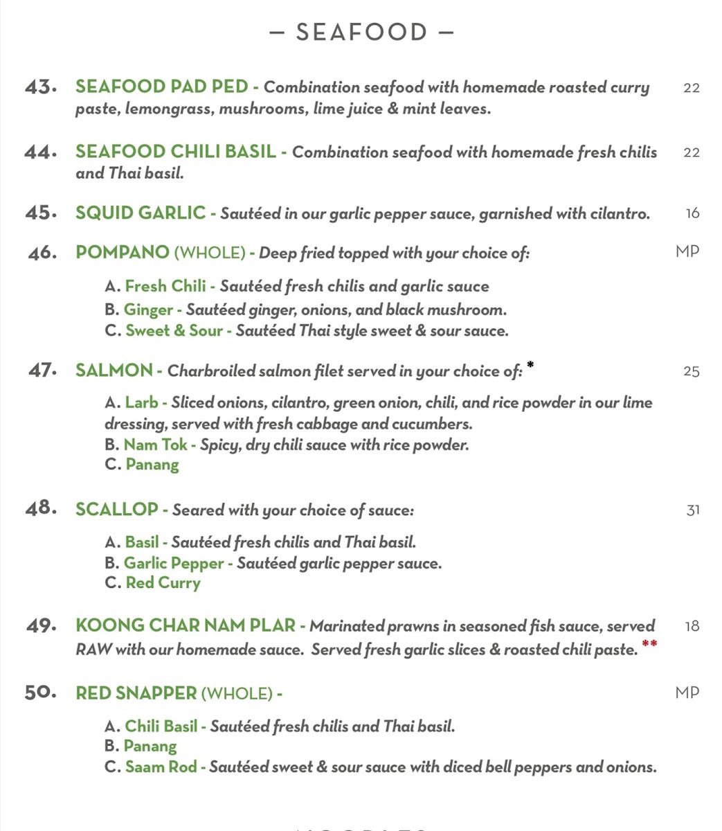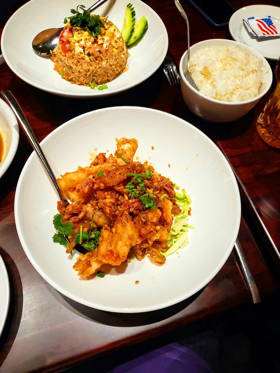 The menu is a feast for both the eyes and palate. Highlights include the exceptional Crispy Garlic Prawns, a dish that diners rave about for its perfect balance of crunch and flavor. For those seeking a hearty meal, the Khao Soi with braised short ribs is a must-try, delivering rich, satisfying flavors that linger on your taste buds. If you appreciate the finer nuances of seafood, the Sea Bass with Ginger stands out as a remarkable dish, steamed to perfection and served atop vibrant steamed vegetables. You can enjoy it alongside the refreshing Thai Tea that complements the meal wonderfully and a sweet finish with Mango Sticky Rice, which offers a delightful contrast of textures.